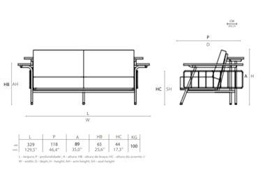 Estrutura: alumínio e madeira cumaru.